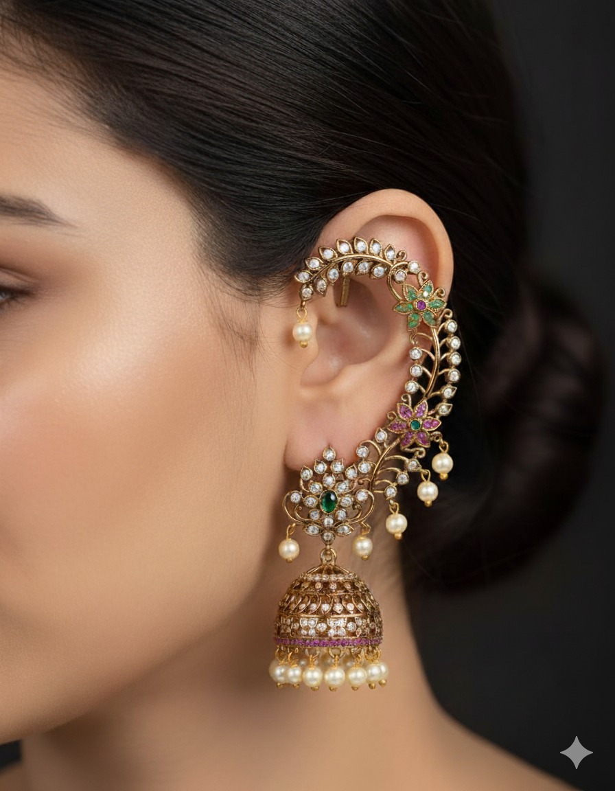 Gold Covering Jhumka Earrings with Pearls