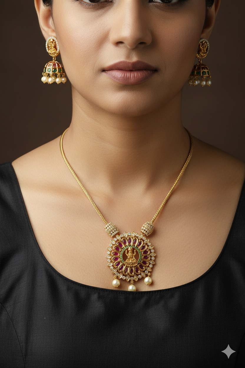 Short Necklace with Lakshmi – Shwetha Jewellers