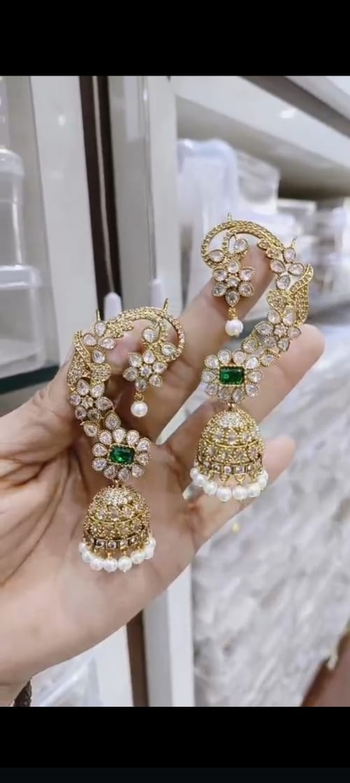 Traditional Jhumka Earrings with Kundan Design