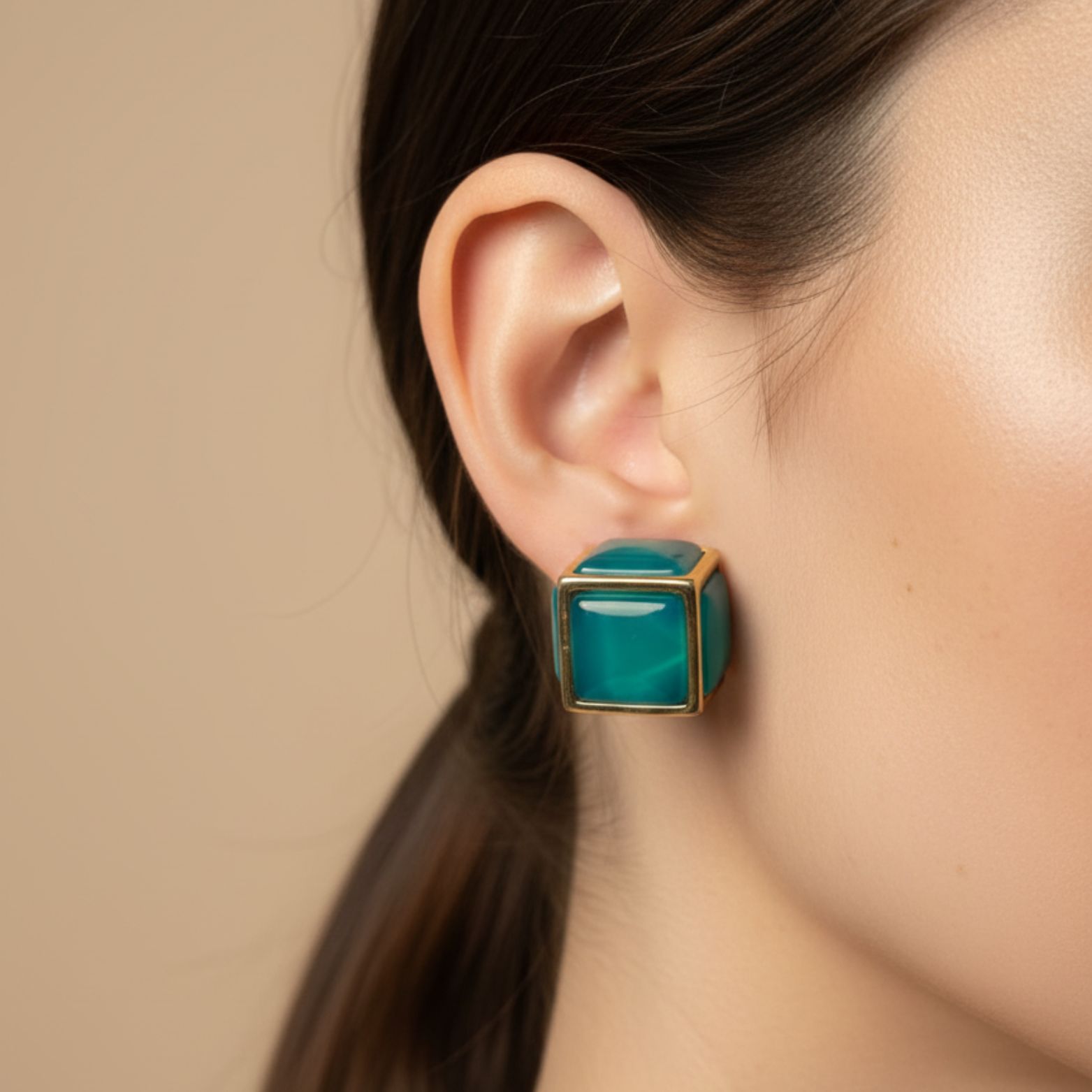 Make a bold statement with these vibrant Teal Geometric Cube Stud Earrings! Featuring a striking teal enamel set within a sleek gold-tone frame, these modern studs are perfect for adding a pop of color and contemporary flair to any outfit. They are lightweight and comfortable, ideal for everyday wear or dressing up for a chic occasion. Take advantage of our limited-time offer: Buy any 2 pairs of earrings and get a 3rd pair absolutely free!